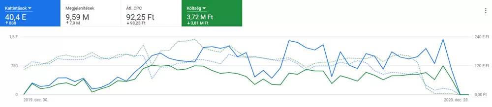 Ügyfelem 2019 őszén keresett meg, mert a számok nem álltak össze. A kampányokat külső marketingügynökség kezelte, a havi Google Ads költés akkorra meghaladta az 1.000.000 Ft-ot, miközben a megrendelések legfeljebb a marketingköltségeket fedezték.